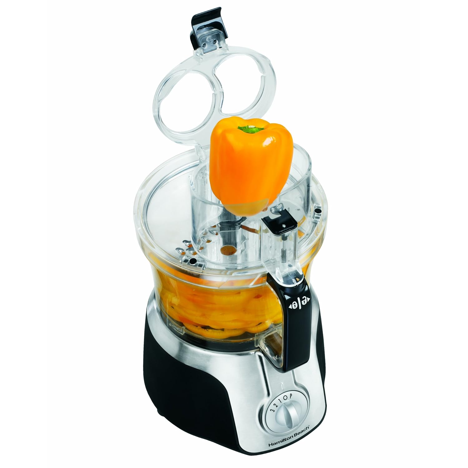 - Stainless steel blades include a reversible slicing/shredding disc, chopping blade and a bonus french fry disc
